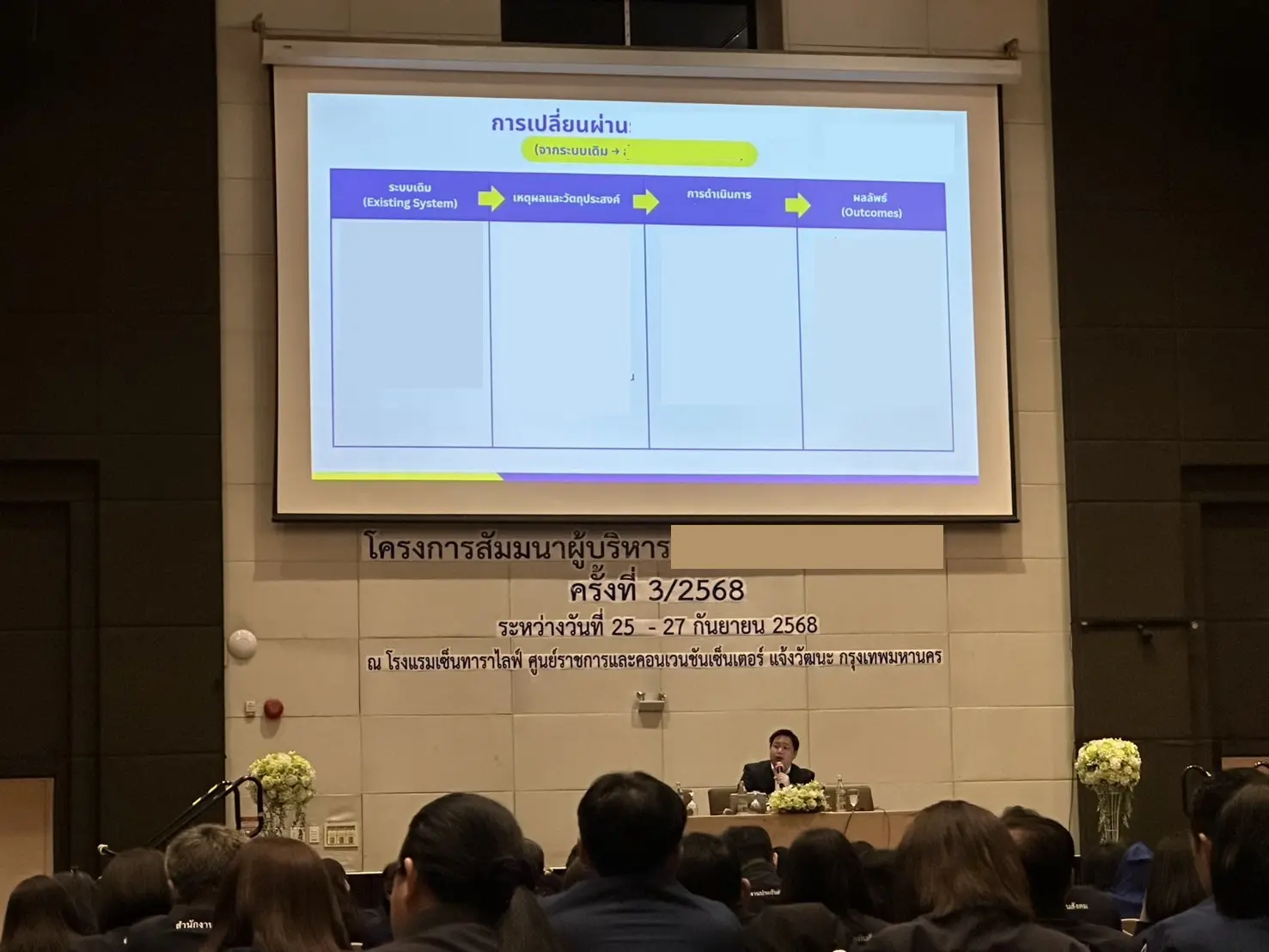 It was our honor being representative of our customer, one of the biggest Thai local technology company in Thailand in SET ( The Stock Exchange of Thailand). The session was to do a management training for our customer's clients. The participants are management level of them, one of the biggest Thai government organization, which span their activities across all provinces of Thailand relating to more than 10 million Thai people's everyday life. And management level people alone who participated are more than 300 people ! How big they are !